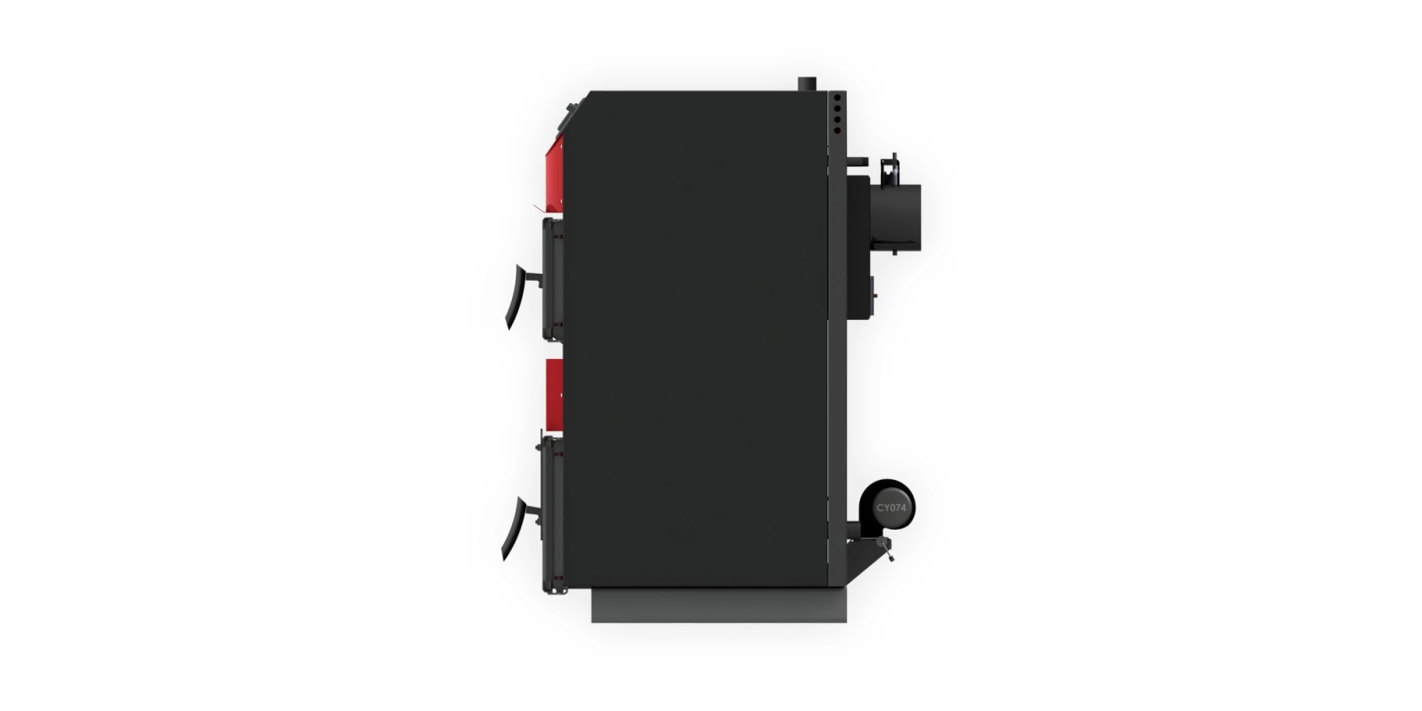 - Flanșă pe ușa inferioară pentru montarea unui arzător pe peleţi.