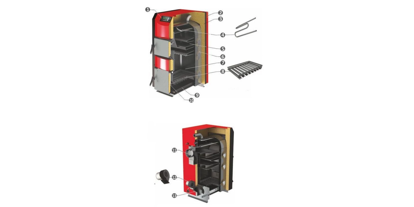 Elementele cazanului pe lemne, din tablă de oțel, 50 kW, cu ventilator, NWB PRIME 50, BURNiT: