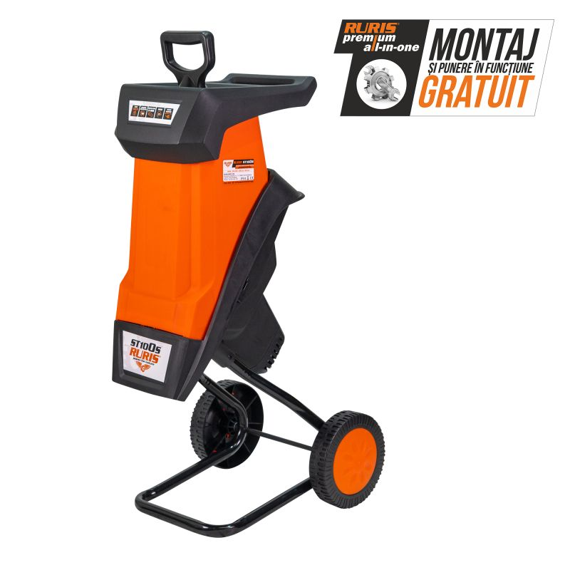 Tocătorul de crengi și resturi vegetale RURIS ST100S cu motor electric de 2.400W este realizat din materiale rezistente, având un diametru de tăiere de maxim 40 mm și o viteză de 4500 rot/min.