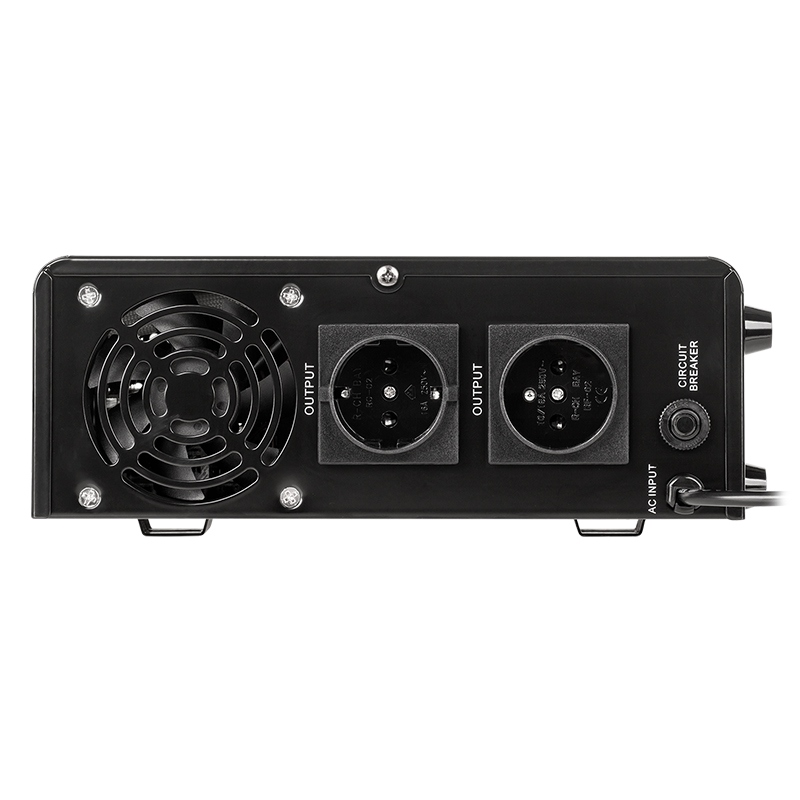 Ca o sursa de alimentare neintreruptibila cu functie de incarcare - lasa tensiunea de la retea sa treaca catre sarcina si incarca bateria de 12 VDC externa. Ca un redresor - incarca bateria externa (dispozitivul trebuie sa fie conectat la sursa de alimentare 230V AC). Ca si invertor - converteste tensiunea de 12V DC de la bateria externa in tensiune variabila AC 230V.